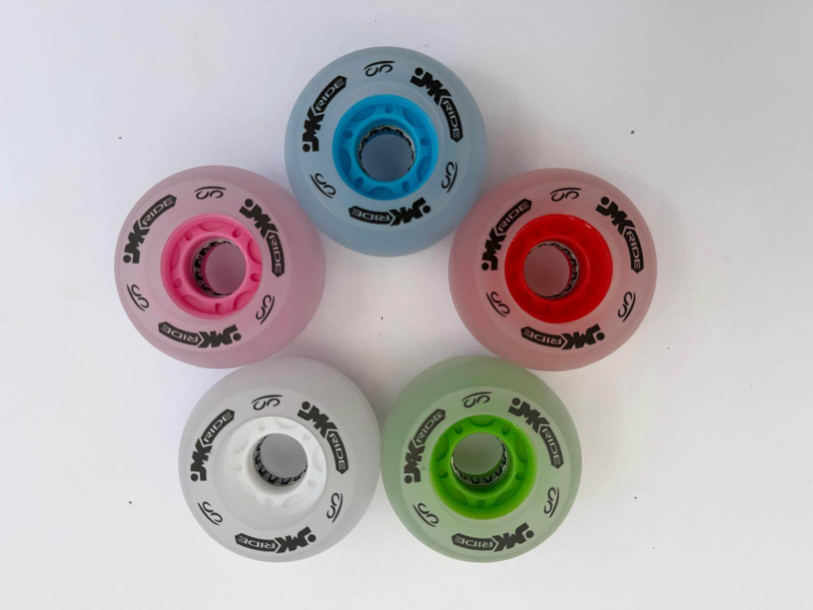 JMKRIDE PROFORMANCE Wheels are a unique innovation. They give our skates that signature smooth and flowy feeling. PROFORMANCE wheels give you more grip and let you achieve higher speeds with less effort.
